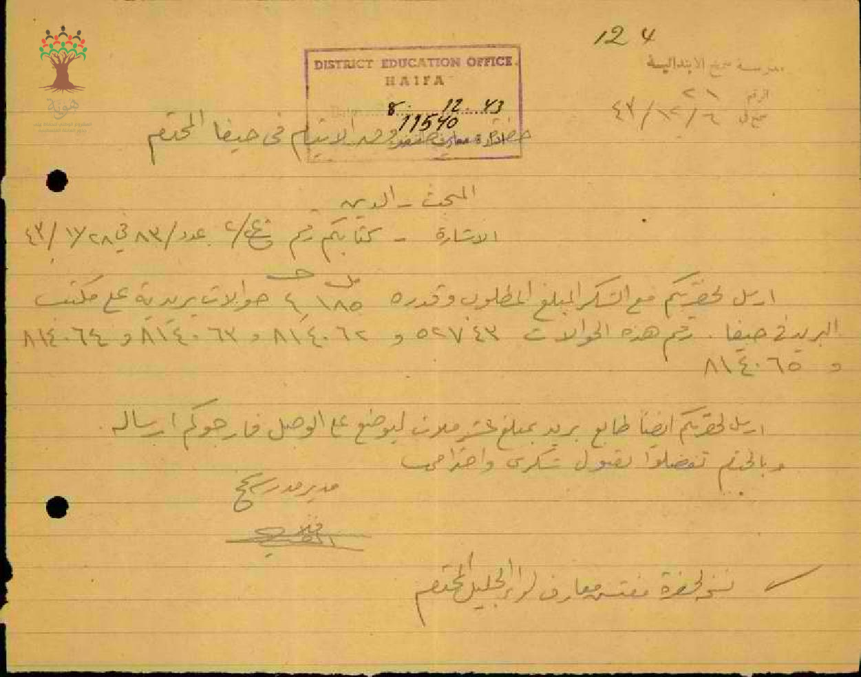 رسالة من المعلم فلاح الماضي الى مدير صندوق الأيتام لدفع المبلغ المطلوب