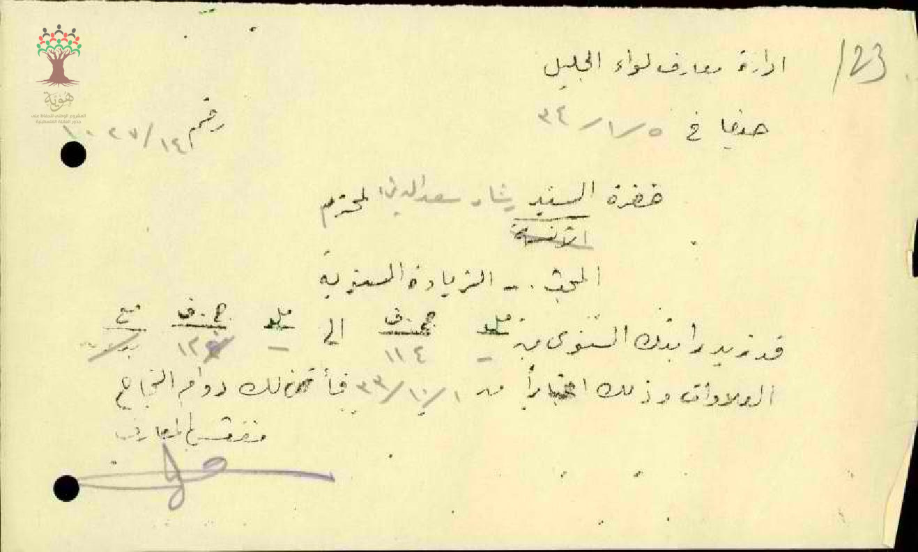 رساله من مفتش المعارف الى المعلم رشاد سعد الدين بخصوص الزيادة السنوية