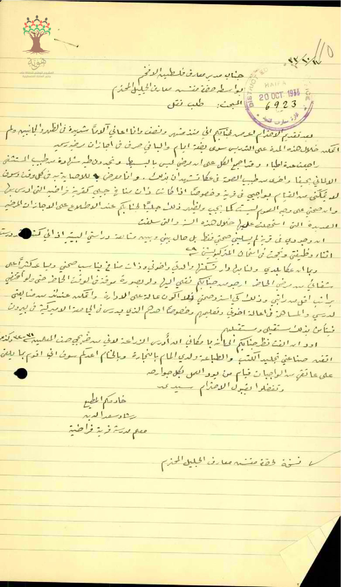 رساله من المعلم رشاد سعد الدين الى مدير المعارف بخصوص طلب نقل