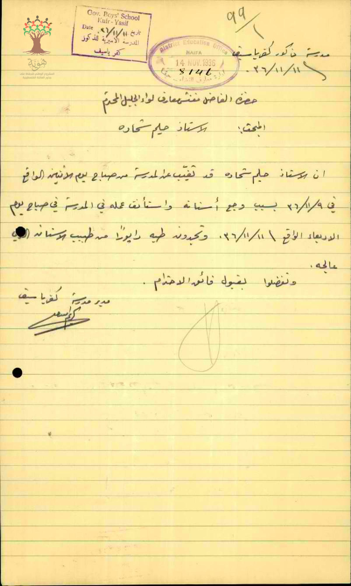 مجموعة رسائل وتقارير طبية عن غياب المعلم حليم شحادة