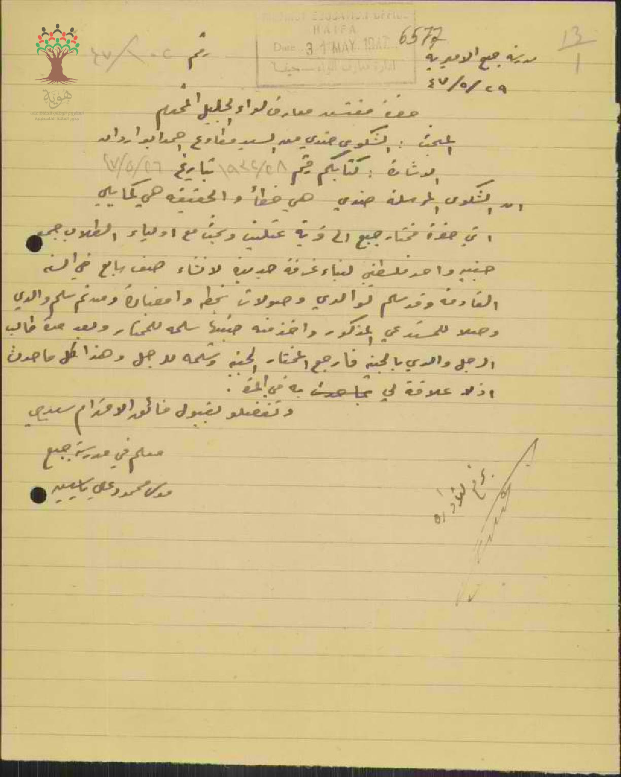 مجموعة رسائل بخصوص دعوى ضد المعلم موسى ياسين
