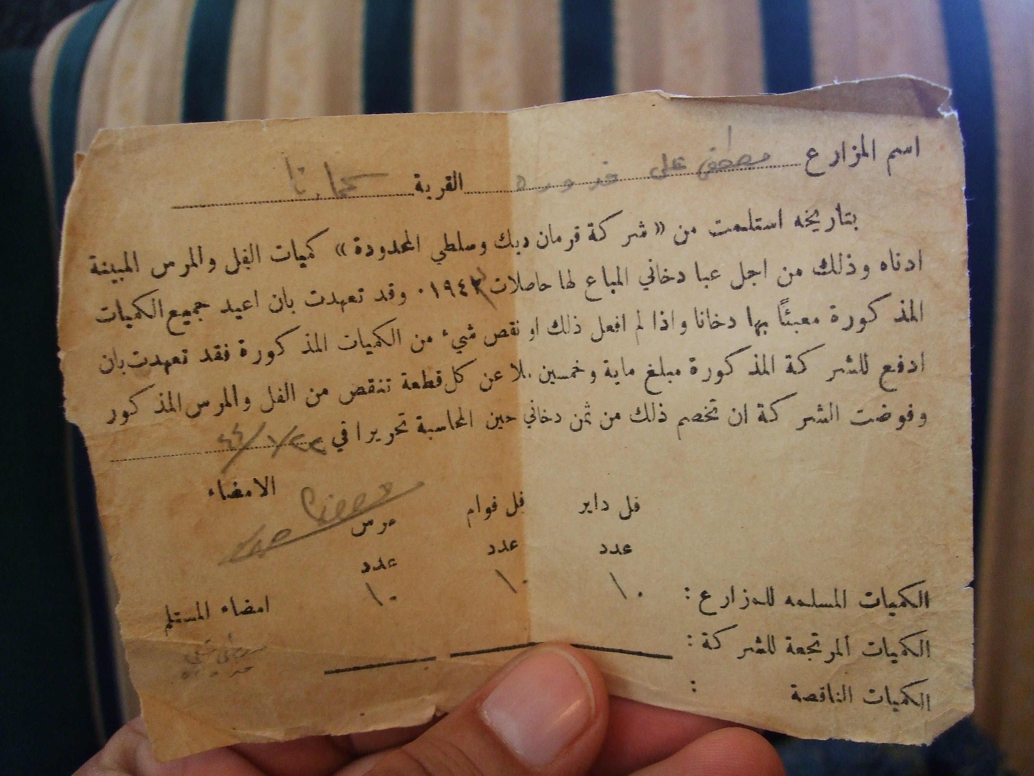 وصل استلام أغراض من شركة قرمان ديك وسلطي لتجهيز كميات الدخان - مصطفى علي قدورة - سحماتا