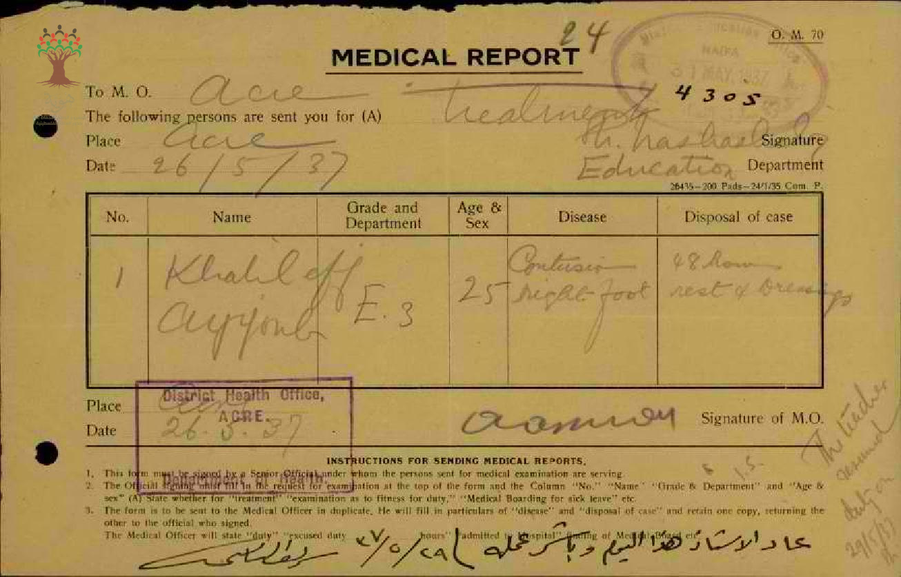 تقرير طبي عن غياب المعلم خليل ايوب-مدرسة رام الله
