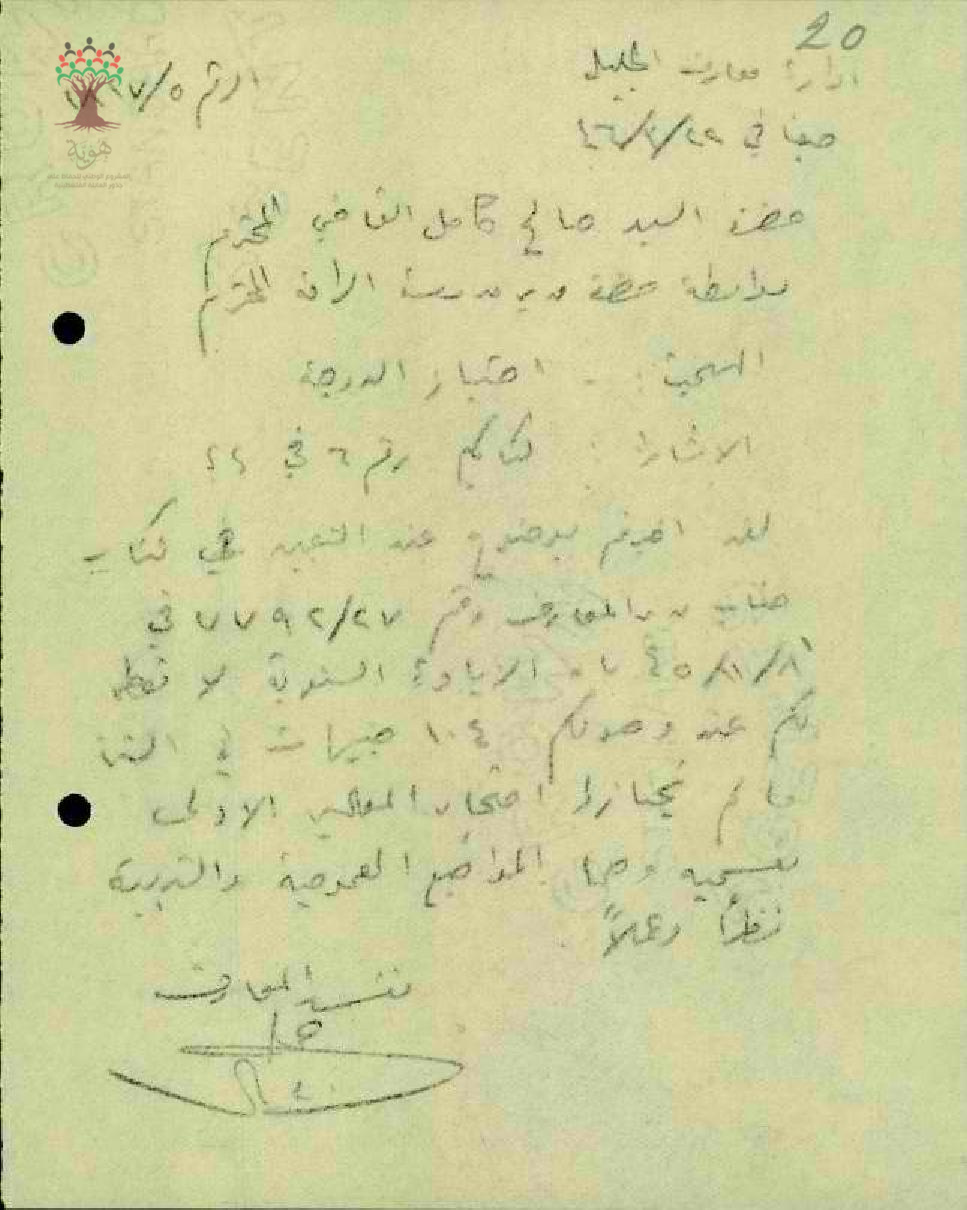 رسالة من مفتش المعارف الى المعلم صالح القاضي بخصوص اجتياز الدرجة
