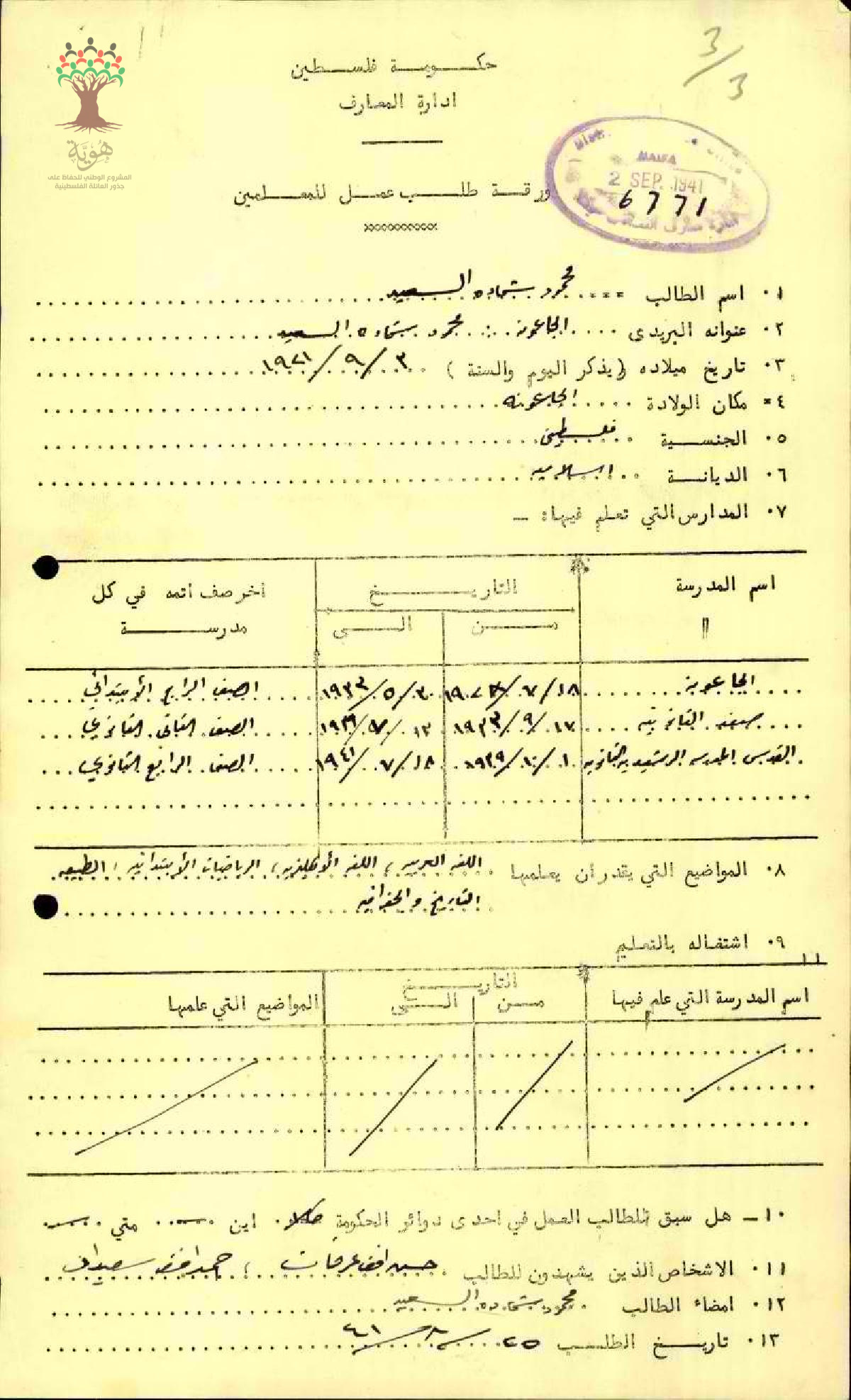 ورقة طلب عمل للمعلم محمود السعيد/الجاعونة