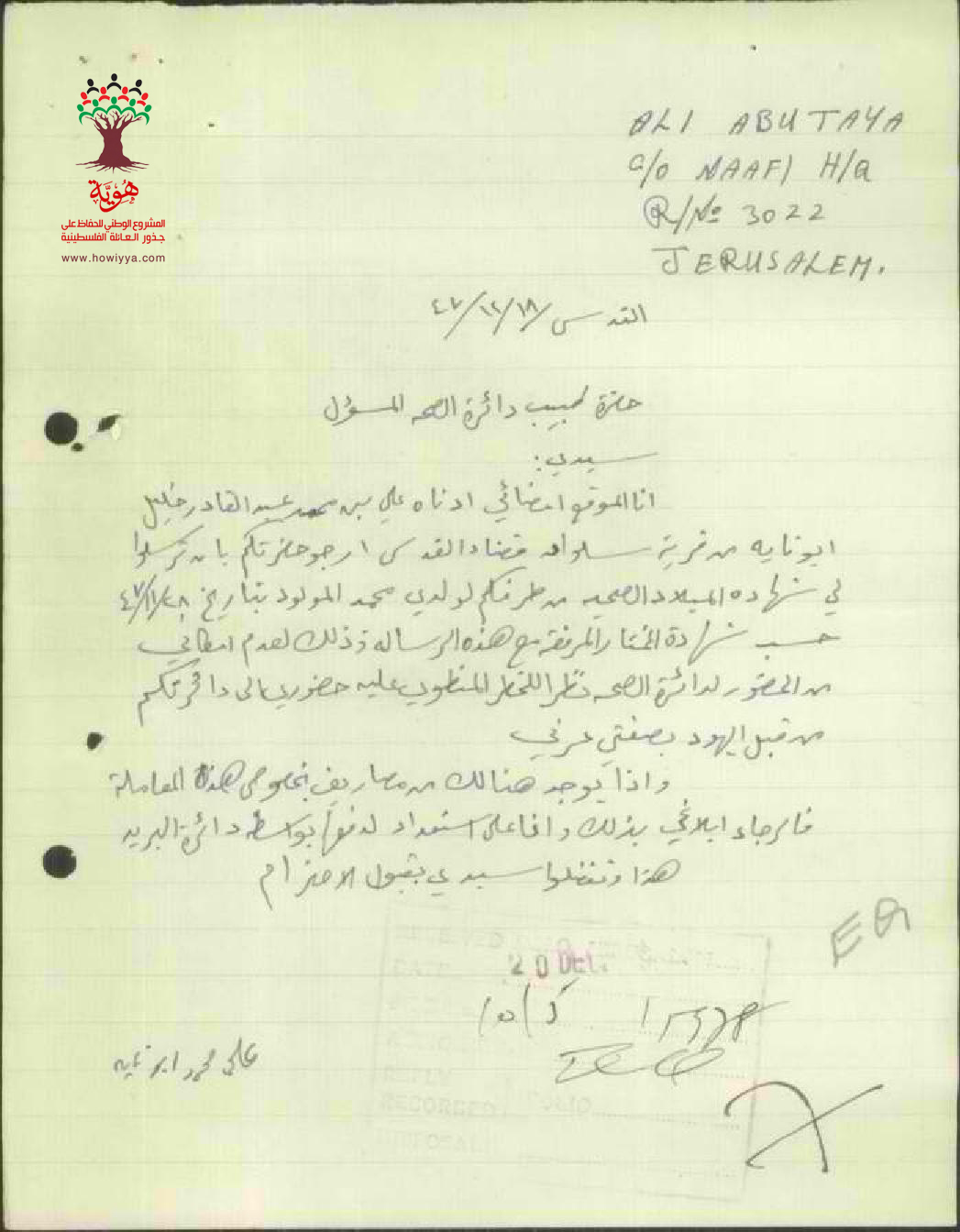 طلب شهادة الولادة -للسيد محمد علي محمد ابو تايه - سلواد