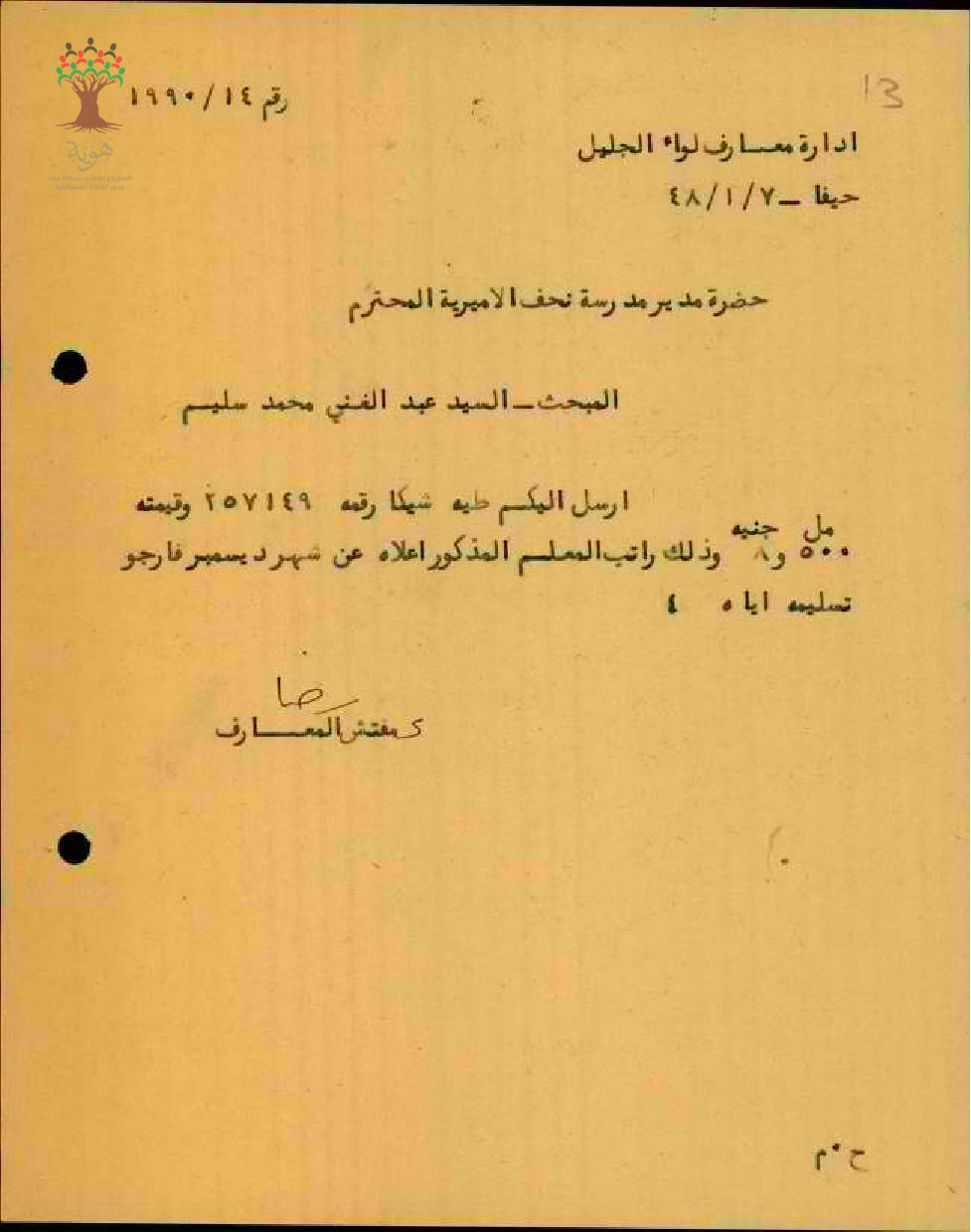 رسائل بخصوص راتب المعلم عبد الغني طه وتحويله