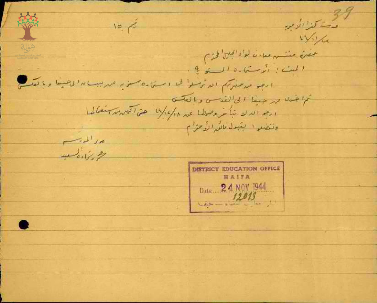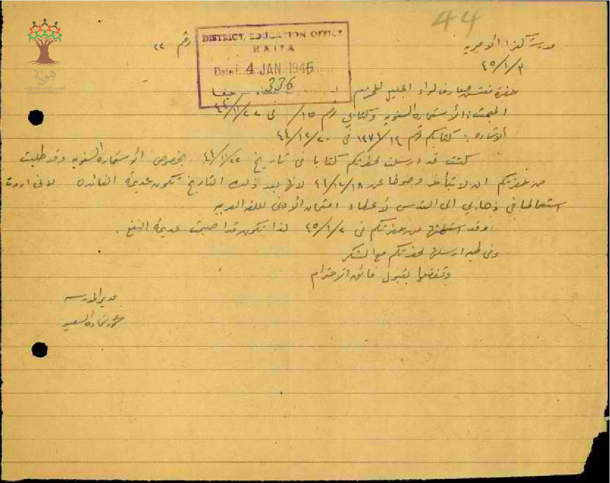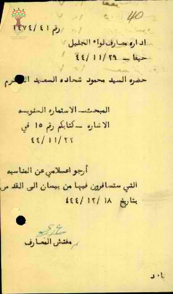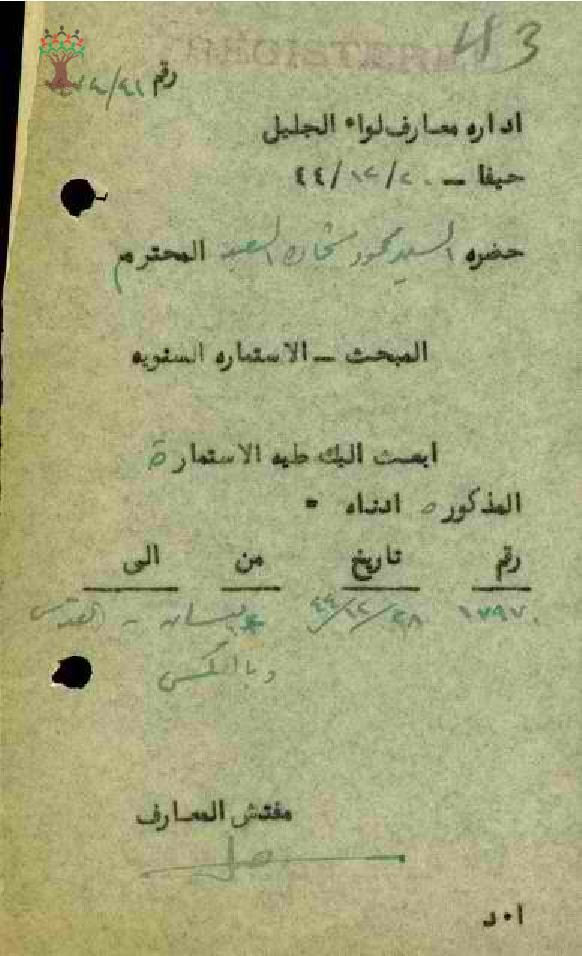 رسالة من المعلم محمود السعيد إلى مفتش المعارف يطلب الاستمارة السنوية