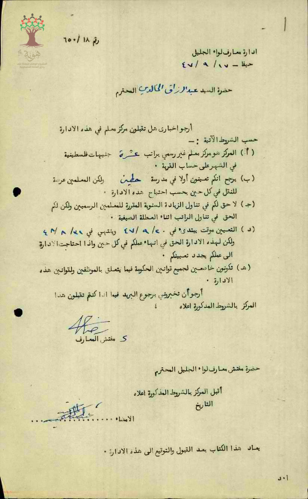 ورقة عرض عمل للمعلم عبد الرزاق الخالدي في مدرسة حطين للذكور