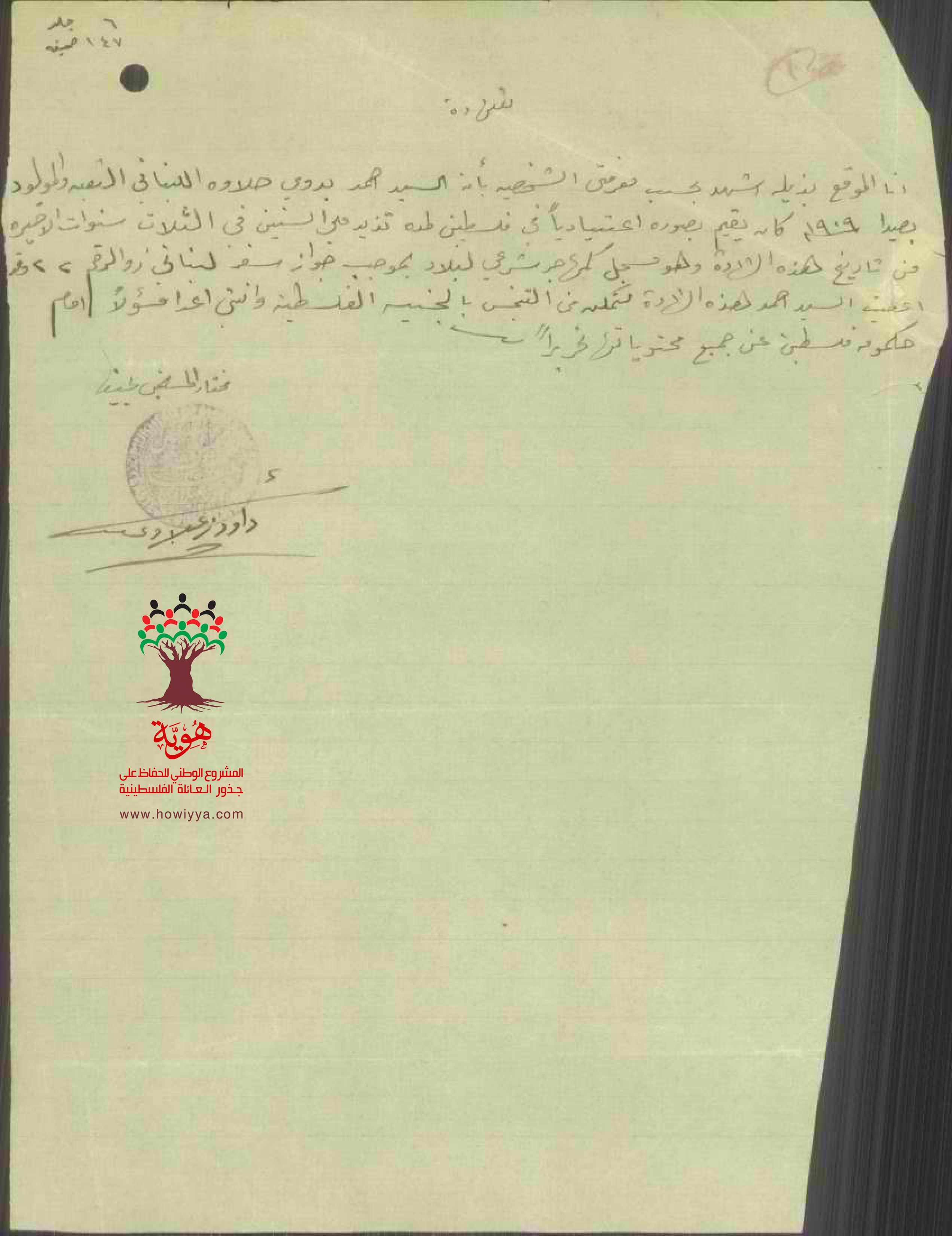 طلب جنسية - احمد بدوي حلاوي مواليد 1909 - صيدا -