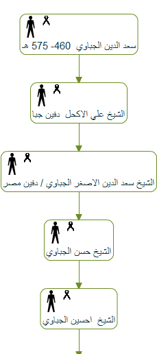 و قد بدأنا بناء شجرة العائلة من السيد:كمال الدين ابراهيم الانور محمد الجباوي محمد الجباوي احسين الجباوي حسن الجباوي سعد الدين الجباوي علي الاكحل سعد الدين الجباوي و لذلك لاسباب تقنية و لان الشجرة لا تستوعب الا عشرين جيلاً فقط حرصاً منا ان يكتب الاجداد من لهم علاقة بفلسطين.