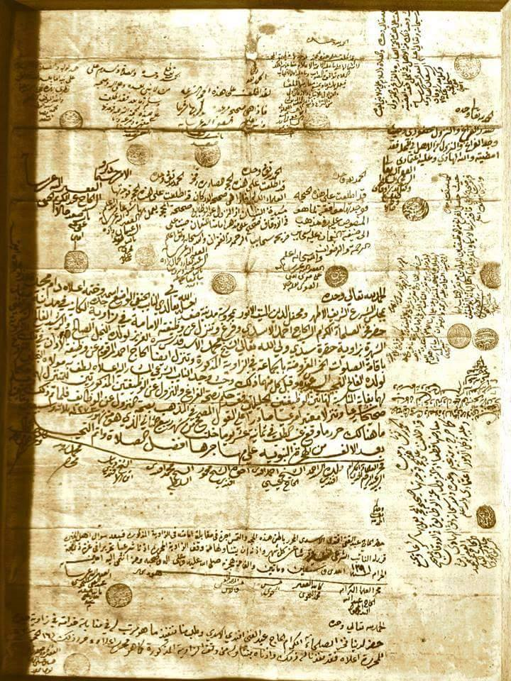 (لا يحل لأحد يؤمن بالله العظيم واليوم الأخر ويعلم أنه إلى ربه صائر نقض هذا الوقف ولا تغييره ولا تبديله ولا الإحادة عنه ولا عن وجوهه وشروطه ولزومه وصحته الآتي ذكرها فيه أنشأ الواقف مولانا المومى إليه أعلاه بلغه الله ما يتمناه وتقبل منه وأحسن إليه وبارك الله فيه ورحم والديه وقفه هذا على الزاوية والمسماة بالصدر والزاوية المذكورة هي الوقف عليها أعلاه وعلى الشيخ محمد القادري الأسدي نفع الله المسلمين ببركاته ولاحظهم بعناياته المعمورة بذكر الله تعالى الكائنة في محروسة صفد لا يشاركه فيها مشارك ولا ينازعه فيها منازع ولا يتأول عليها متأول يستمر عليها بالاستقرار والتمكين أبد الآبدين ودهر الداهرين إلى أن يرث الله الأرض ومن عليها وهو خير الوارثين وشرط مولانا الوقف المذكور تقبل الله منه الثواب النظر والتولية إلى أمر وقفه هذا وصدقته هذه مع الإمامة بالزاوية المذكورة المعمورة بذكر الله تعالى إلى الشيخ الإمام والليث الهمام سيد تتحاسد عليه الأمصار والبقاع وتتشرف الألسن وتتشنف بأجناده الأسماع وتخشى لمواعظه القلوب وتطرق لمهابته الأبصار وتستحق أن تكتب كرامته بتنفس الليل على صفحات النهار مربي المريدين وقدوة السالكين أعين أعيان أولياء الله العارفين بالله مرجع السادة الصوفية وكبيرهم شمس الملة أبي عبد الله الأسد المشهور بنسبه بابن أميرهم نفعنا الله والمسلمين أجمعين بدعائه أمين مدة حياته ما عاش دائما وبقي لا يشاركه في النظر والتولية والإمامة مشارك ولا ينازعه فيما ذكر منازع ثم من بعده على أولاده دون الإناث وأولاد أولاده مثل ذلك ثم على أولادهم وأولاد أولادهم نظير ذلك ثم على أنسالهم وأعقابهم كذلك بدا ما عاشوا ودائما ما بقوا فإذا انقرضوا بأجمعهم وابادهم الموت عن آخرهم وخلت الظارض منهم ولم يبقى لهم نسل ولا عقب ولا ذرية صرفة غلة ذلك جميعها بتمامها وكمالها على الزاوية المذكورة الموقوف عليها وأن تعذر الصرف عليها والعياذ بالله صرفة الغلة إلى الفقراء والمساكين من المسلمين القاطنين بمحروسة صفد وإن وأمكن العود عاد يجري ذلك كذلك أبد الآبدين ودهر الداهرين إلى أن يرث الله الأرض ومن عليها وهو خير الوارثين وشرط مولانا الواقف المذكور المشار إليه أعلاه تقبل الله تعالى منه النظر في أمر وقفه هذا للشيخ المذكور أعلاه ثم من بعده لذريته يقدم في ذلك الأرشد فالأرشد من ذرية الشيخ الموقوف عليه المذكور وأولادهم دون الإناث وأولادهم كما شرح وبين أعلاه وشرط الواقف المذكور أن يصرف محصول الوقف المذكور على الزاوية المذكورة من تعمير وترميم فيها ومن شروطه أيضا أن يجلس في هذه الزاوية من الشيخ وذريته المذكورين قراءة ما تيسر من القرآن العظيم بعد كل صلاة من الصلوات الخمس يهدي ثواب ذلك إلى مولانا الواقف ووالديه أخرج مولانا الواقف ظل الله في أرضه وقفه هذا عن ملكه وأبعده عن حيازته وجعله وقفا صحيحا شرعيا على الوجه المشروع المبين أعلاه وقفا منجزا مسلما وهو سيتدعى إلى الله تعالى في من يروم هذا الوقف بنقض أو فساد أو تغيير شيء منه أو أحداث مظلمة على المتولي أو أخذ حاجة منه فعليه لعنة الله والملائكة والناس أجمعين فمن رام هذا الوقف بذلك أو يستبئ منه فيخاصمه العزيز الحاكم بين العباد يوم لا ينفع مال ولا بنون إلا من أتى الله بقلب سليم قال الله تعالى بعد أن اعوذ بالله من الشيطان الرجيم (فمن بذله بعد ما سمعه فإنما أثمه على الذين يبدلونه أن الله سميع عليم )وثبت ما نسب إلى مولانا الواقف المذكور المتشرف بذكر أعاليه لا برحت سعيدة أيامه منيرة لياليه بشهادة شهود أخره وبصريح الاعتراف في ديوانه الشريف بذلك وانفاذ أمره الشريف تسليم ذلك ثبوتا شرعيا وانفاذا محررا منجزا مرعيا وحكم أيده الله تعالى بموجب ذلك وبصحته الوقف ولزومه وانفاذه وإبرامه وتنجيزه وتسليمه حكما صحيحا شرعيا مؤولا فيه واعتبار ما وجب اعتباره شرعا جرى ذلك في عشر ذي القعدة الحرام من شهور سنة اثنين وعشرين وتسعمائة من الهجرة النبوية على صاحبها أفضل الصلاة وأزكى التحي