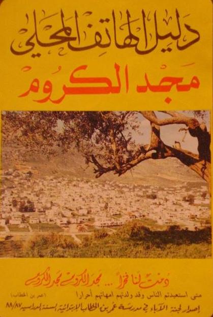 وقد أحضر لي معه كتيب (دليل الهاتف المحلي – مجد الكروم 1987- 1988)، وفيه أرقام وعناوين أهالي البلدة في ذلك الوقت..