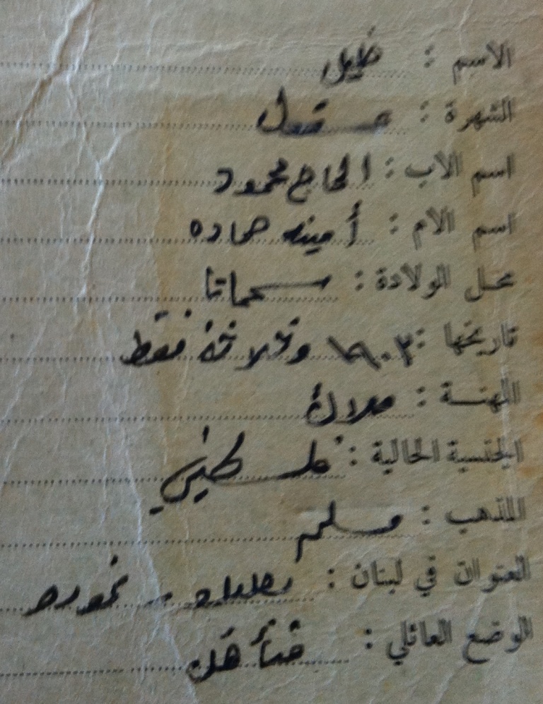 ويبدأ بالتعريف عن نفسه، فهو نهاد خليل الحاج محمود عسقول. وفي بطاقة هوية والده نقرأ تفاصيل أكثر..