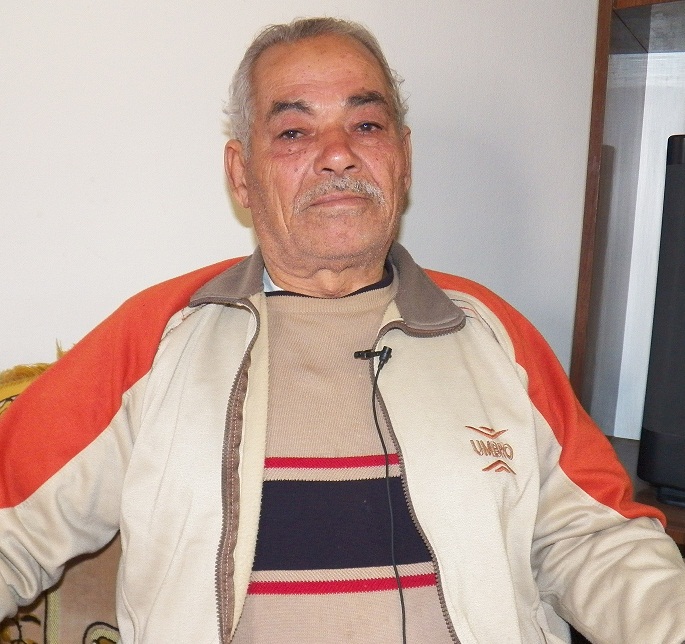 لم نخرج معنا أوراق ووثائق من فلسطين، كنت بالبيارة على حدود نهاريا لوحدي، وهربت العالم وأنا لحالي، الناس كانوا يفلحون على البقر، ووالدي كان كذلك مع أخي الكبير، كنت بالبيارة وهربت لوحدي، أخذت البقرات ورحت لعند عكا، في الجبل من غير وعي، ووصلت عند منطقة الناس جالسين فيها تحت الزيتون (ميعار) الكبار والشباب.