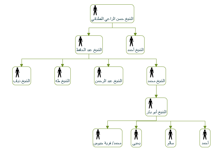 جد العائلة / الشيخ محمد ابن الشيخ حافظ تزوج حليمة ابنة عمه الشيخ احمد المدفون في يازور و له مقام لا يزال موجودا حتى الان و بذلك تصبح العائلة كما هو وارد في الجدول.