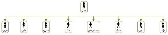 بدأ الحوار بإعطائي شجرة عائلة الحاج ابراهيم ابتداء من الجد جمال، وأبناؤه: فؤاد، نجيب، جميل، عبد الرحمن، خالد، فخرية، فائزة و فريزة.