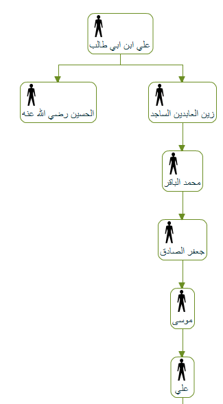 خوجة رشيد احمد زين العابدين احمد محمد شهاب الدين احمد جعفر الربحي علي الهادي محمد علي موسى جعفر الصادق محمد الباقر زين العابدين الساجد علي بن ابي طالب