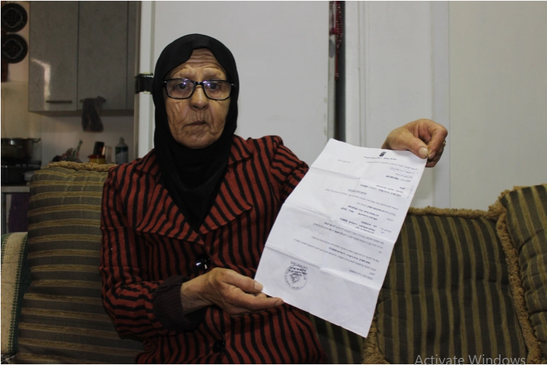في منزل عائلة سالم، تعيش المسنة فاطمة مع أبنائها الثلاثة وعائلاتهم في منازل قديمة متهالكة استأجرها والدها عام 1948، بعدما قرر الاستقرار في القدس قادما من قرية ترمسعيا (إحدى قرى محافظة رام الله وسط الضفة الغربية).