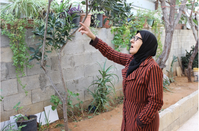 ألِفت فاطمة المكان وتعلقت بالمنزل وبالأشجار التي زرعها والداها قبل رحيلهما، وخلال جولة في بستانها الصغير، قالت "عندي شجرة رمان وتفاح وزيتون وتين وكرز وليمون.. شغلي الشاغل العناية بالأشجار، كيف يمكن أن أُبعد عنها قسرا؟ لن أخرج من هنا سوى إلى القبر".
