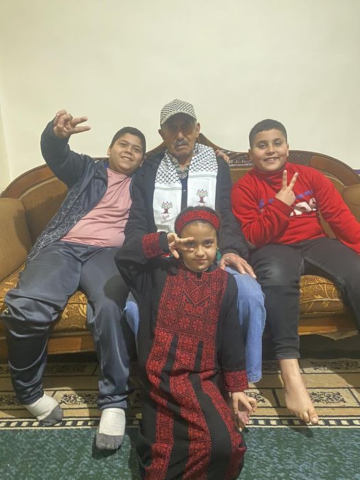 أثناء المقابلة كان أحفاده يستمعون لحديثه عن الزيب وأمله بالرجوع إليها رغم كبر سنه، فحديثه رغم مرور السنوات ما يزال مفعماً بالأمل بهذه العودة، وبدا جميع الأحفاد متأثرين بالجلسة وحديث الجدّ النابع من أعماق القلب.. وعند سؤالنا لأحفاده عن حقهم بالعودة إلى فلسطين وإلى الزيب التي لم يروها، أبدوا حرصاً شديداً التمسك بهويتهم الفلسطينية وحقهم بالعودة إلى الدار التي أُخرج منها جدهم.. أما جوري - حفيدة الحاج - فوجهت رسالتها لأطفال غزة للتمسك بالأرض رغم الجراح والعذابات التي يعانونها، حتى لا يعيشوا ألم التهجير مدى العمر.. فإننا النصر صبر ساعة.. على أمل اللقاء بهم على أرض فلسطين محررة.