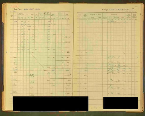 يرد في ملفات الضرائب لقرية ترشيحا لعام 1938 ميلادية، سجل الضرائب لابن البلد المرحوم ابراهيم خليل عبليني..