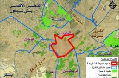 من جهته أكد المركز العربي للتخطيط البديل وبناء على متابعاته المتواصلة ان المخطط المذكور يمتد على مساحة تصل الى 5,070 دونم منها 3,000 دونم لبناء المعسكر ذاته في حين بقية المساحة سيوضع عليها شروط وتقييدات على البناء. على أن مساحة الأرض التي ستُسلب من أبناء قرية المكيمن ستصل الى حوالي 3,000 دونم وستعرض الأهالي في هذه المناطق الى الطرد بحجة أنهم معتدون وبأنهم قاموا بالاستيلاء على هذه الأراضي (والتي هي بحوزتهم من قبل قيام الدولة) بطرق غير شرعية.