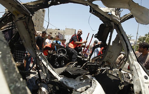وقالت مصادر فلسطينية، إن شابا استشهد وأصيب عدد آخر بجراح في قصف منزل في بلدة الزوايدة وسط القطاع، كما تم استهدف الطيران موقع الأمن الداخلي ومصنع باطون برفح جنوب القطاع، في الوقت الذي قصفت فيه المقاتلات الصهيونية بصورة مكثفة منازل بحي النجار بخزاعة، يتجمع فيها عشرات المواطنين، أسفر عن وقوع عشرات الإصابات، دون تمكن سيارات الإسعاف من الوصول إلى المكان.