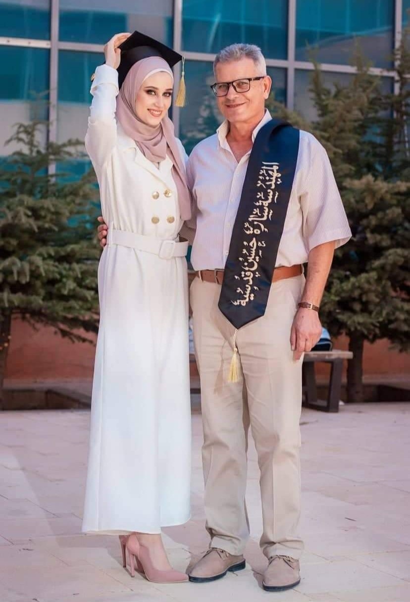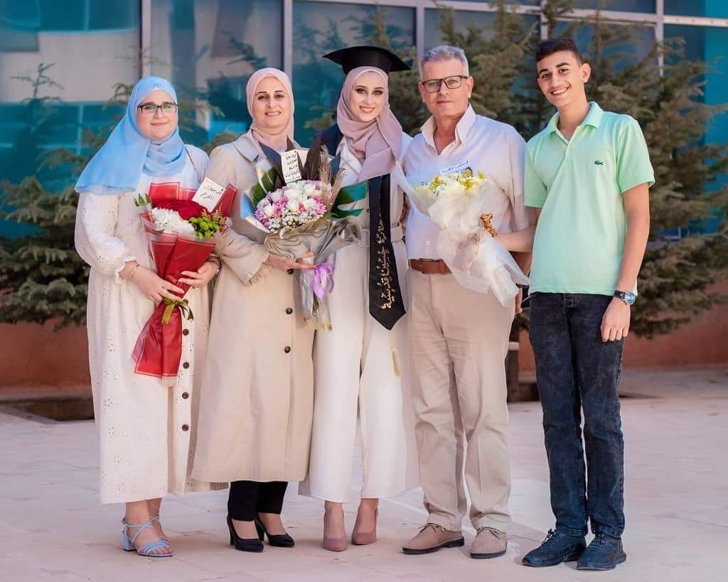 المهندسة سارة حسين قدسية تتخرج من كلية الهندسة المعمارية من جامعة دمشق في مدينة درعا مخيم اللاجئين وهي من قرية إجزم حيفا.