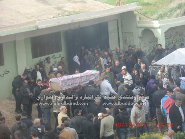 وقد تم الدفن اليوم السبت 10-12-2011 في مخيم نهر البارد - مقبرة خالد بن الوليد