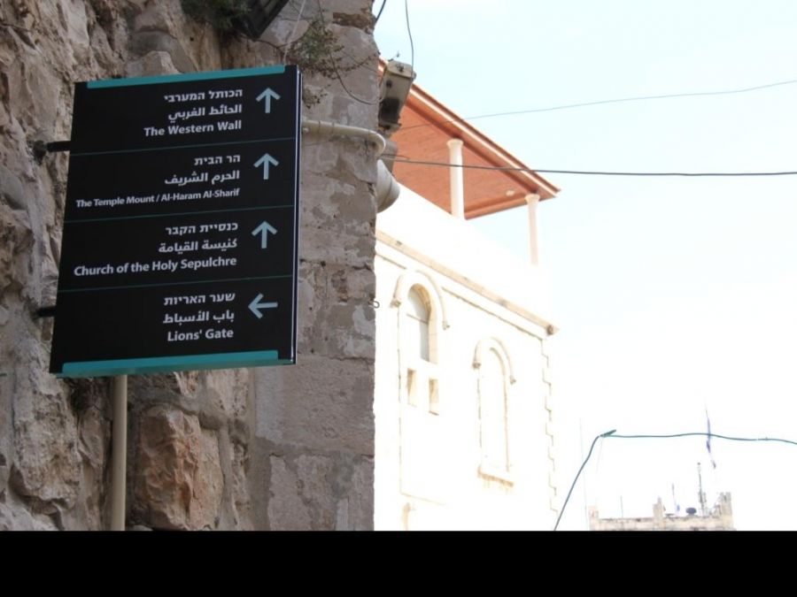 ففي منطقة باب العامود التاريخية والشهيرة ، ومن أبواب البلدة القديمة الرئيسية تنتصب يافطة كتب عليها "إلى معبر قبة راحيل باللغة العربية".
