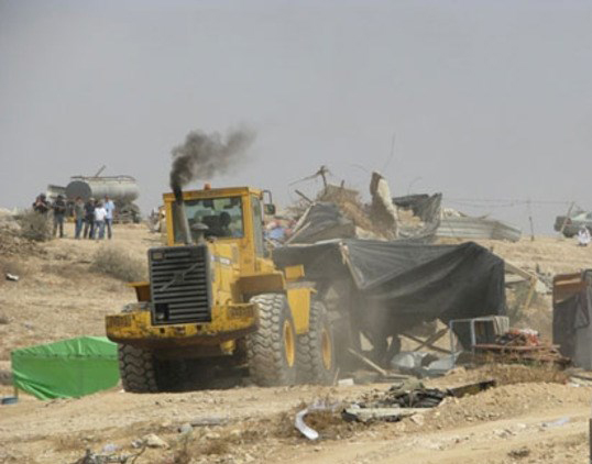خربت الجرافات الإسرائيلية آلاف الدونمات المزروعة بالقمح والشعير والبقوليات في منطقة رخمة في النقب.