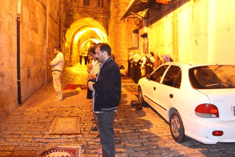 اضطر مئات المواطنين ممن تقل أعمارهم عن الخمسين عاما من سكان القدس والداخل الفلسطيني المحتل لأداء صلاة فجر اليوم الثلاثاء 5/8/2014،في شوارع وطرقات البلدة القديمة القريبة من بوابات المسجد الأقصى المبارك.