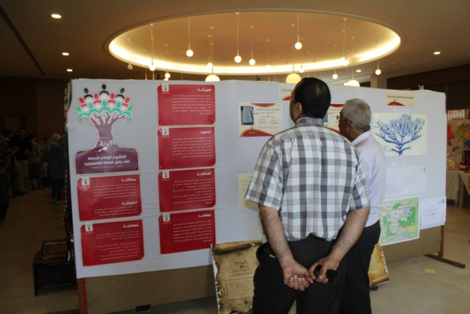 وقد عرضت (هوية) تعريفاً موجزاً عن رسالتها وأهدافها ونشاطاتها، إضافة إلى عرض موجز عن آليات التوثيق للعائلة والقرية الفلسطينية، وقسم آخر يتعلق بأساليب العدو الصهيوني لطمس الهوية الفلسطينية.. كما تضمن معرض (هوية) بعض شجرات العائلات الفلسطينية.