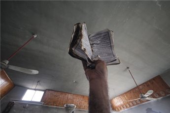اقدم مستوطنون فجر اليوم الاربعاء15/1/2014، على حرق مدخل مسجد علي بن أبي طالب في بلدة ديراستيا قضاء سلفيت.