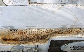 كما يبدو فليس هنالك أية علاقة بين الكتابة التي عُثر عليها ومبنى السبيل، حيث تمحور اهتمام البنائون بقطعة الرخام التي نحتت الكتابة عليها. دمجت الكتابة بالحائط خلال بنائه وهي مقلوبه كما أنها كانت بعيدة عن أنظار المارة إذ انها كانت في القسم العلوي من الحائط. بهذا الشكل وعلى الرغم من أنها كانت مكشوفة أكثر من مائتي عام ، لم يكن بالأمكان مشاهدتها من الشارع وبقيت غير معروفة حتى تم بناء السقالة بهدف أعمال الصيانة.