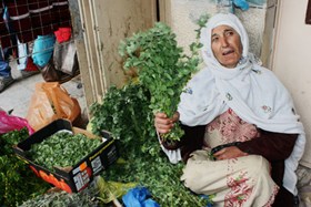 بالكاد اقتنعت بالحديث معنا.. وبالكاد وافقت على أن نلتقط لها ثلاث صور وهي تحتضن ما حملت في صبيحة يومها من خضار لتبيعها في باب العمود.
