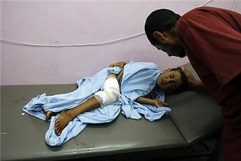 وأكد الدكتور أشرف القدرة الناطق باسم وزارة الصحة بالحكومة المقالة إصابة طفل ووالدته ووالده بجراح متوسطة جراء تساقط الشظايا على منزلهم بعد قصف منطقة خالية في المغراقة، وتم نقل المصابين الى مستشفى شهداء الأقصى.