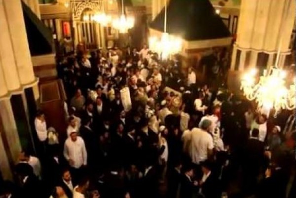 أقام عشرات المستوطنين احتفالا صاخبا في ساحات الحرم الإبراهيمي الشريف، بدعوى إدخالهم التوراة إلى الحرم، مساء الخميس.