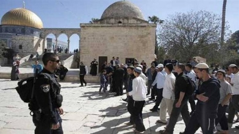 وقالت مصادر بالقدس المحتلة، أن المستوطنين اقتحموا عبر مجموعات صغيرة ومتتالية بحراسة قوات الاحتلال التي ادخلتهم من جهة باب المغاربة.